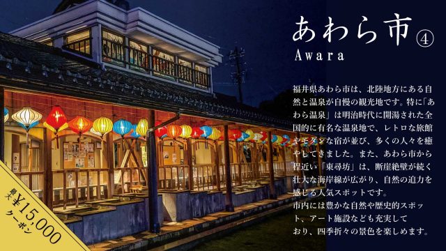 【福井県あわら市④】で使える♪最大15,000円引きふるさとオトククーポン配布中!!