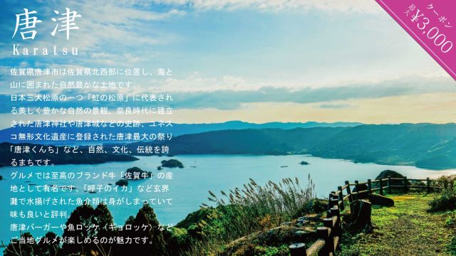 【佐賀県唐津市】で使える最大3,000円引きふるさとオトククーポン配布中!!