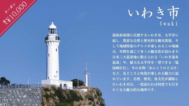 【福島県いわき市】で使える♪最大10,000円引きふるさとお得クーポン配布中!!