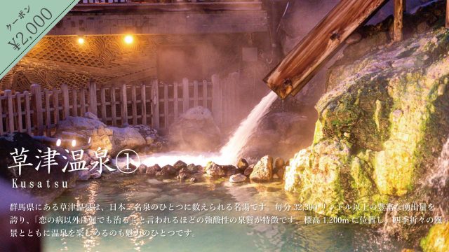草津町草津温泉①で使える2,000円引きふるさとオトククーポン配布中!!【じゃらん】