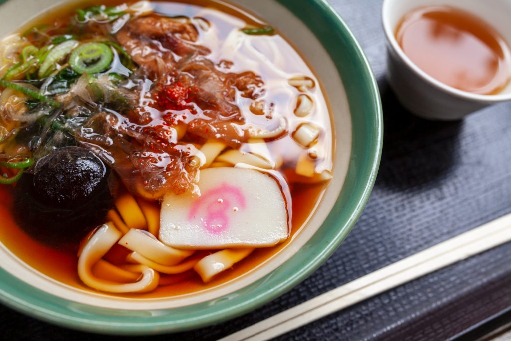 愛知県のソウルフード「きしめん」。うどんに比べて平たく(1mm)太いのですが、