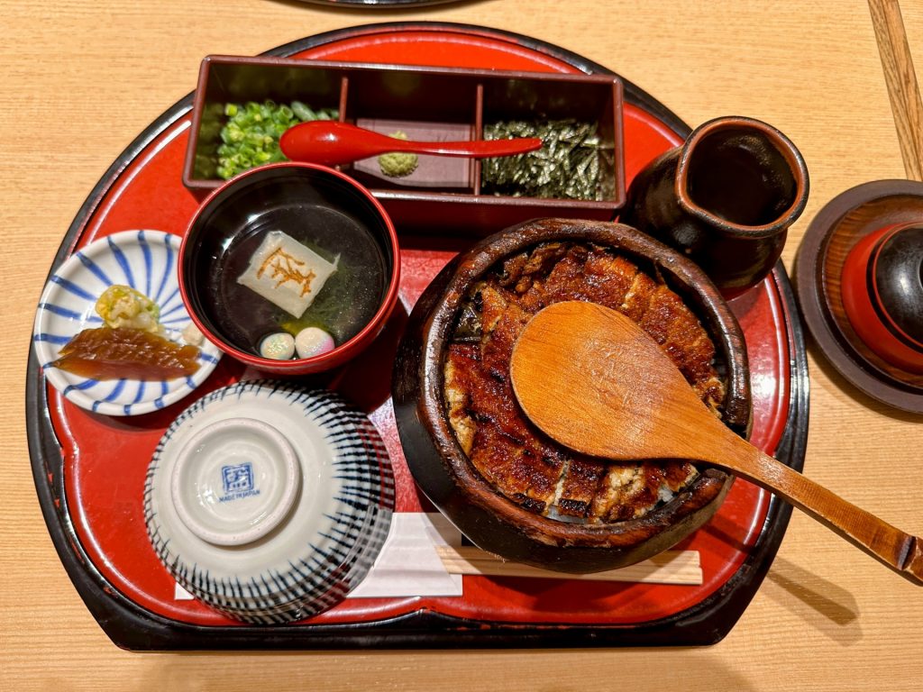名古屋名物「ひつまぶし」。お櫃に盛られたご飯の上に短冊切りにしたウナギのかば焼きをのせて食べます。「ひつ」とは木製のお櫃、「まぶし」は混ぜると言う意味。発祥は愛知県名古屋市にある熱田神宮前。