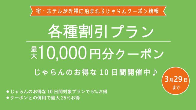 毎月20日から!お得に旅行にいける『じゃらんのお得な10日間』クーポン情報!!