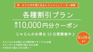 現在、旅行予約サイト「じゃらん」ではクーポンフェスを開催しています。