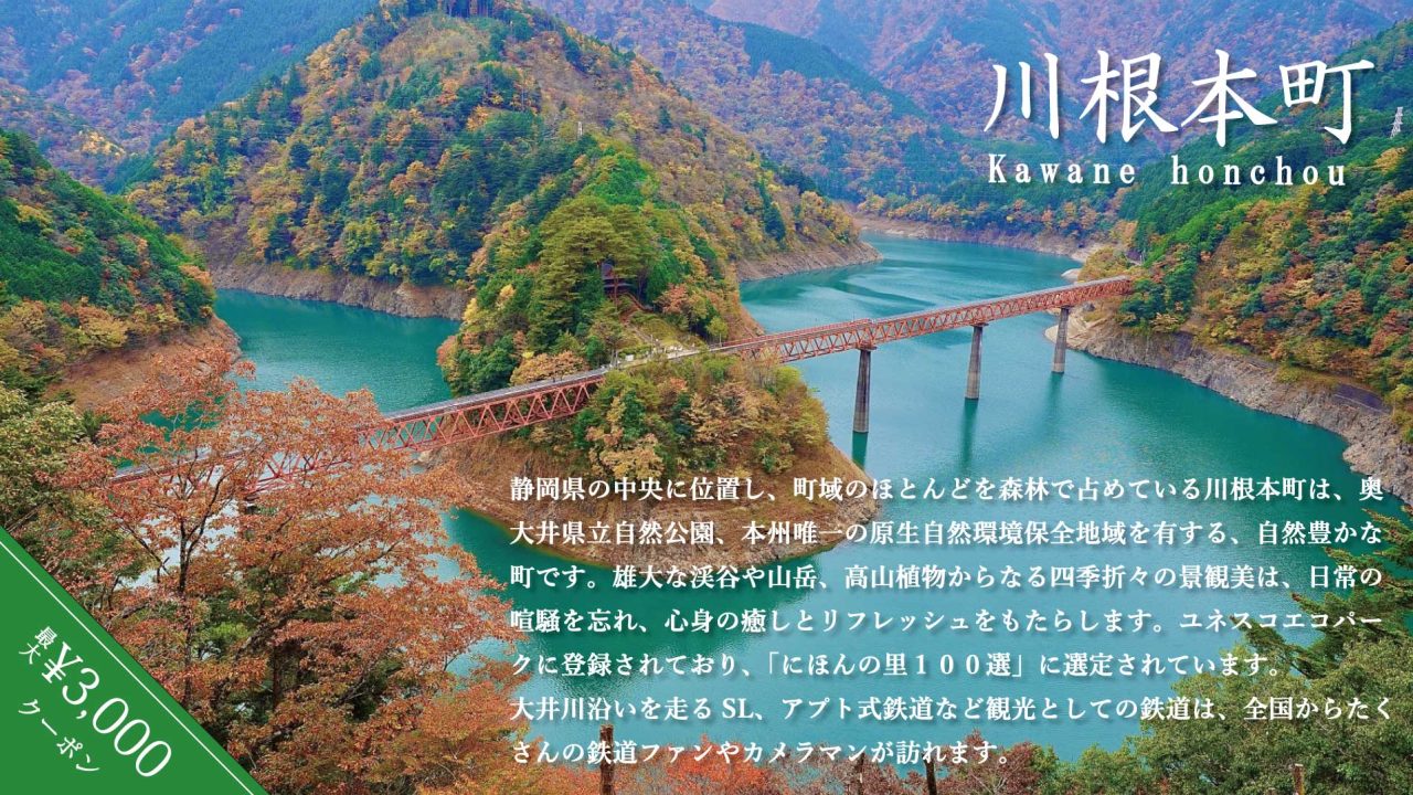 じゃらんでは静岡県川根本町の宿泊に使える最大3,000円引きクーポンを2024年10月19日(土)まで配布中です。(無くなり次第終了です)