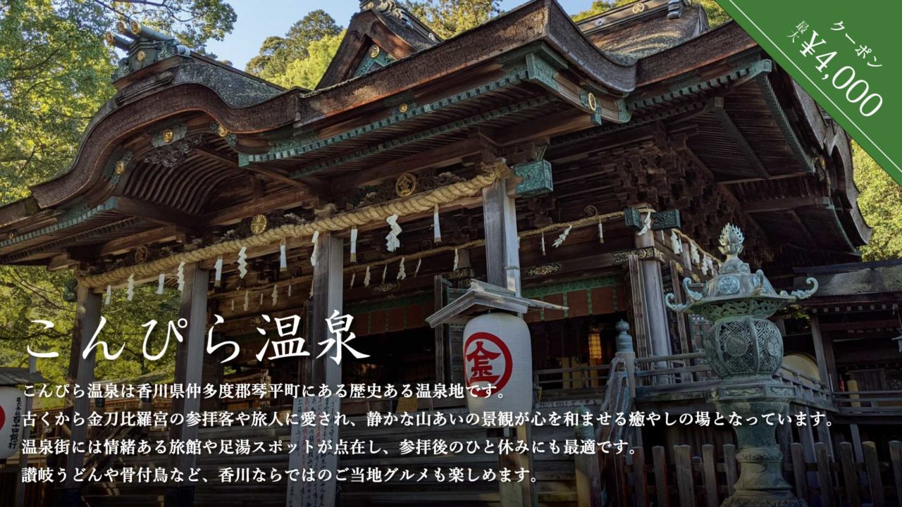 じゃらんでは香川県こんぴら温泉の宿泊に使える最大4,000円引きクーポンを2026年3月19日(木)まで配布中です。(無くなり次第終了です)