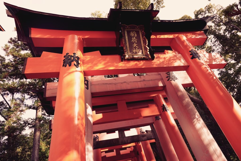 朱色の鳥居が一直線に並ぶ「千本鳥居」は圧巻の光景。稲荷神を祀る場所で、商売繁盛や家内安全、縁結びのご利益があるとして、毎年多くの参拝者が訪れます。