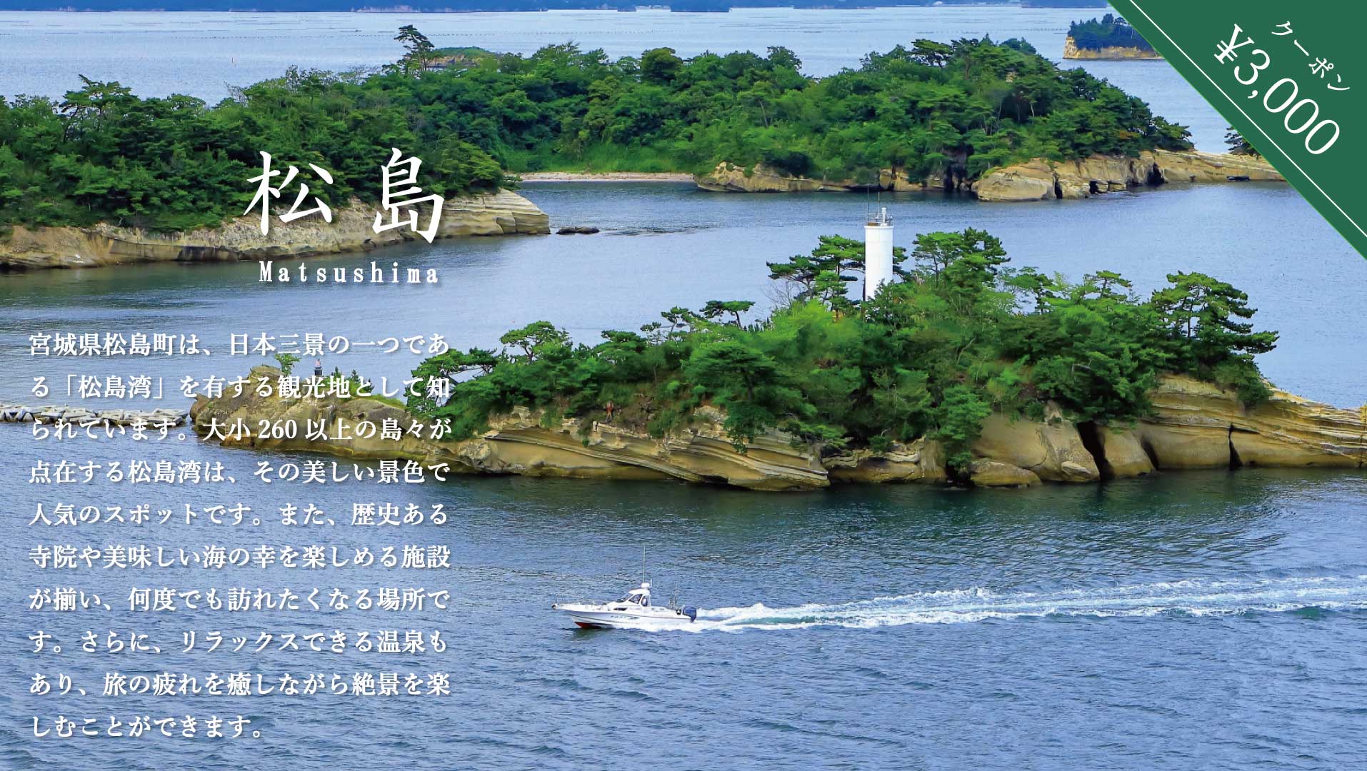 | 宮城県松島温泉 |  | ■ | 3,000円 | 2026年3月29日(日)まで | 2026年1月5日(月)から | 1名以上 |