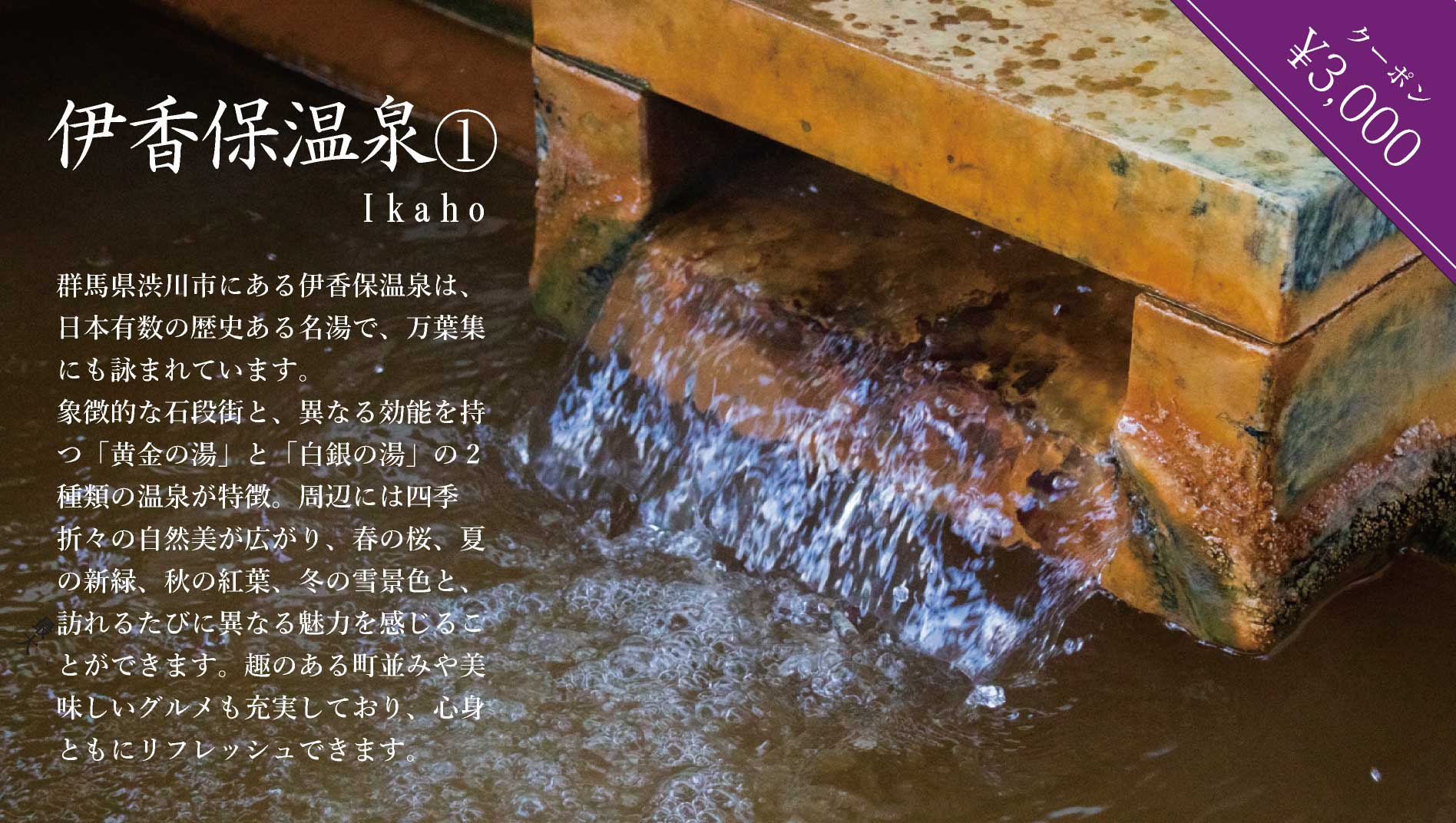 | 伊香保温泉② |  | ■ | 3,000円 | ~9月30日(火) | 9月1日(月)~ | 3名以上 |