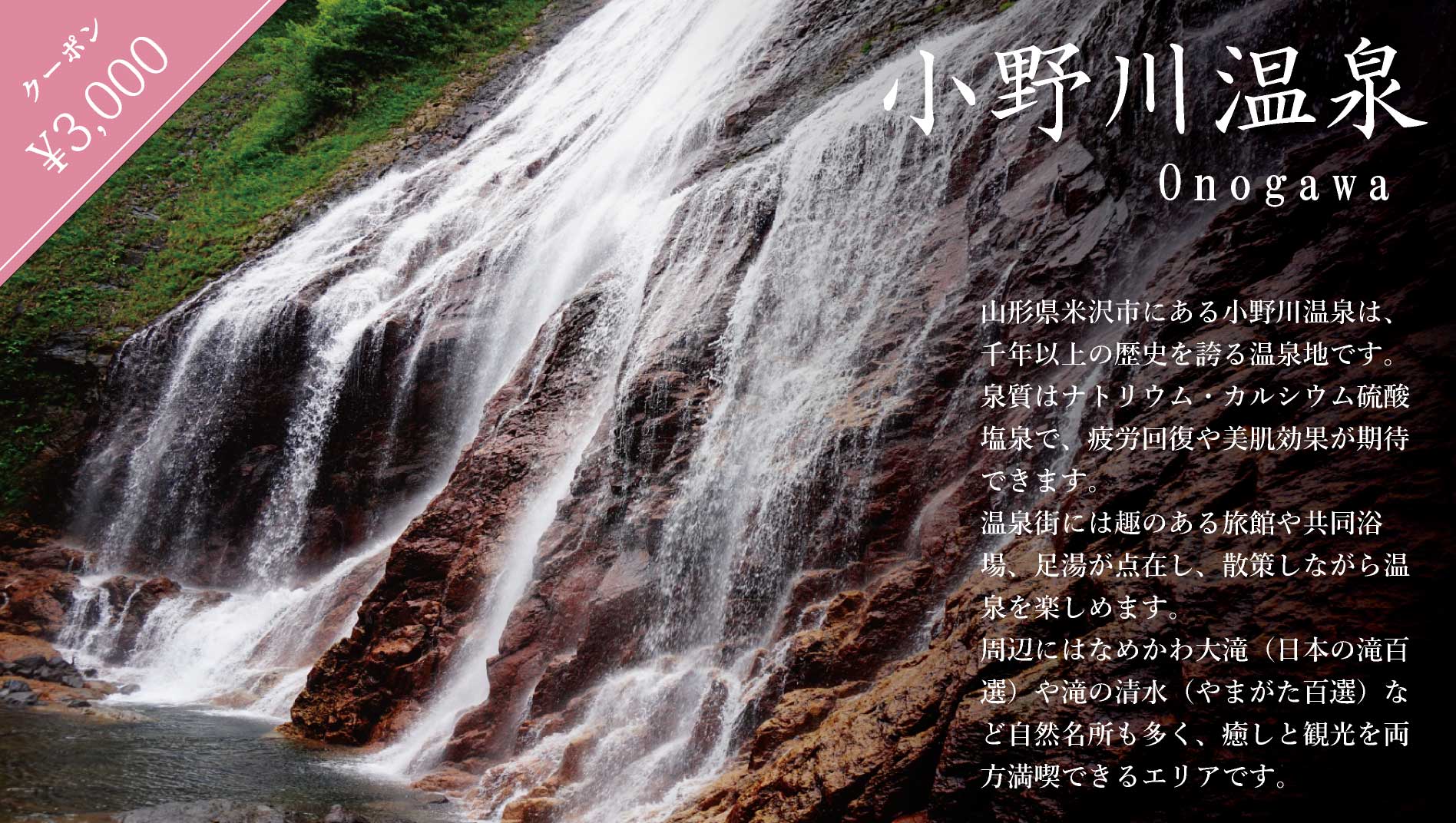| 山形県小野川温泉 |  | ■ | 3,000円 | 2026年1月30日(金)まで | 11月17日(月)から | 1名以上 |