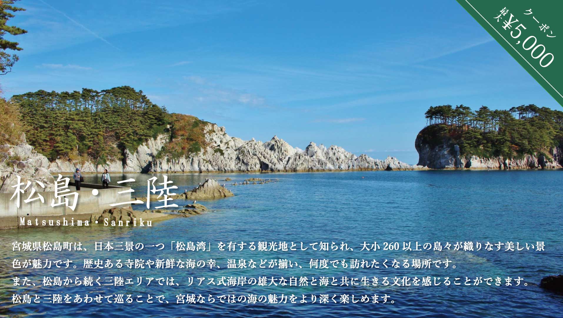 | 宮城県松島・三陸エリア |  | ■ | 最大5,000円 | 2026年2月26日(木)まで | 2026年1月6日(火)から | 2名以上 |