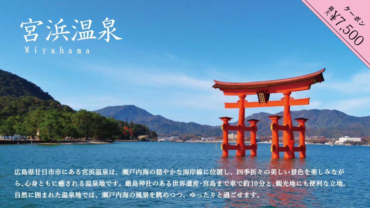 広島県廿日市市にある宮浜温泉は、瀬戸内海の穏やかな海岸線に位置し、四季折々の美しい景色を楽しみながら、心身ともに癒される温泉地です。厳島神社のある世界遺産・宮島まで車で約10分と、観光地にも便利な立地。自然に囲まれた温泉地では、瀬戸内海の風景を眺めつつ、ゆったりと過ごせます。