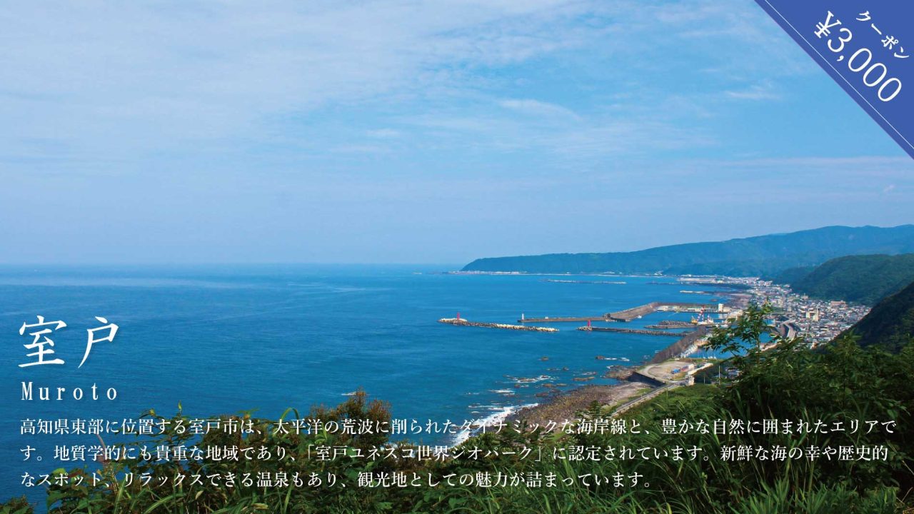 じゃらんでは高知県室戸市の宿泊に使える3,000円引きクーポンを2025年3月31日(月)まで配布中です。(無くなり次第終了です)