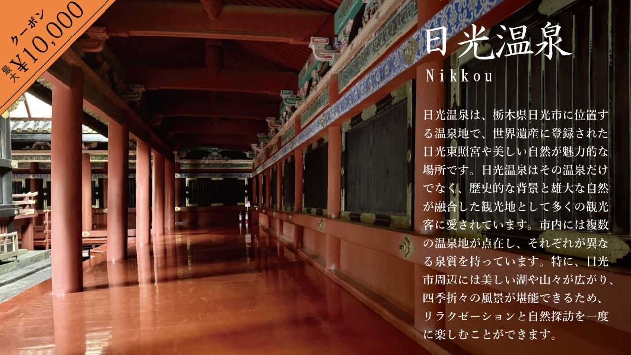 じゃらんでは日光温泉の宿泊に使える最大10,000円引きクーポンを2025年4月25日(金)まで配布中です。(無くなり次第終了です)