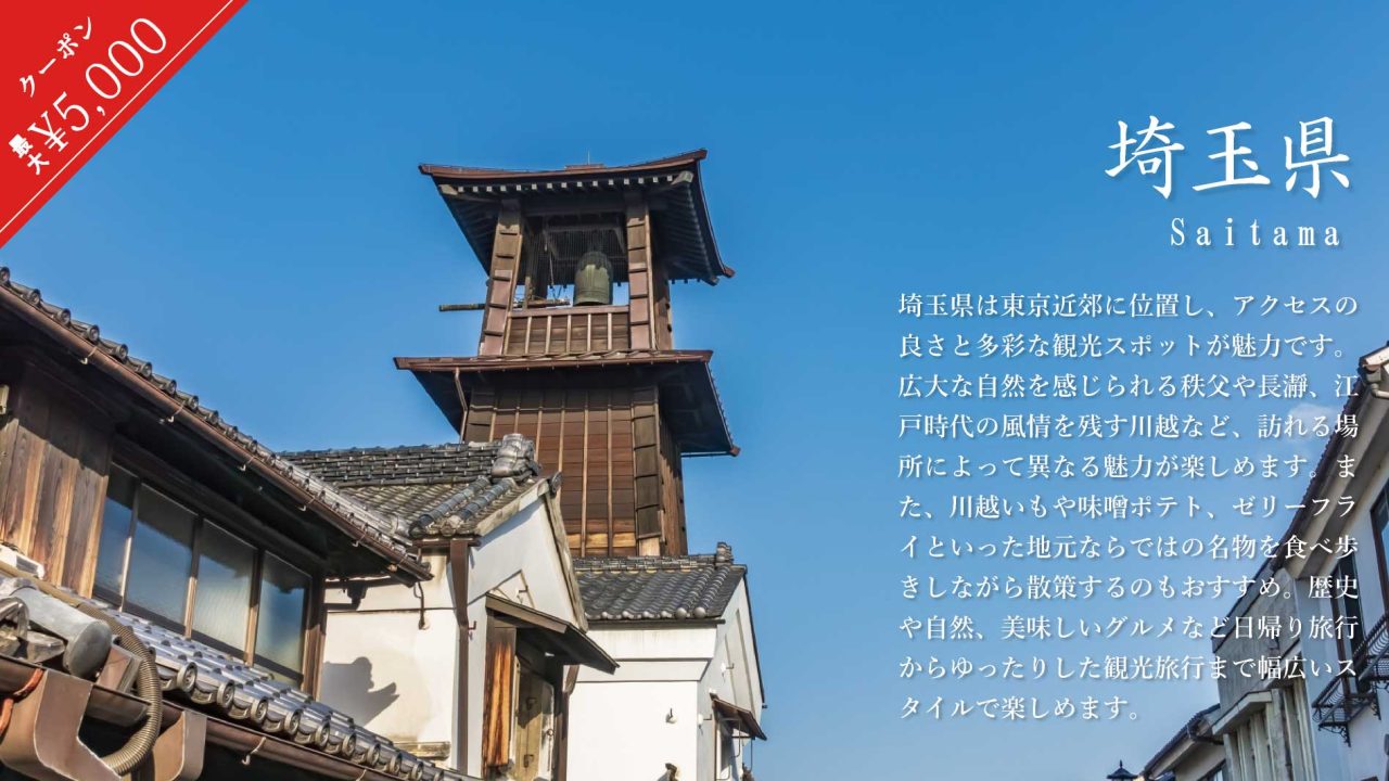 じゃらんでは埼玉県の宿泊に使える最大5,000円引きクーポンを3月16日(日)まで配布中です。(無くなり次第終了です)