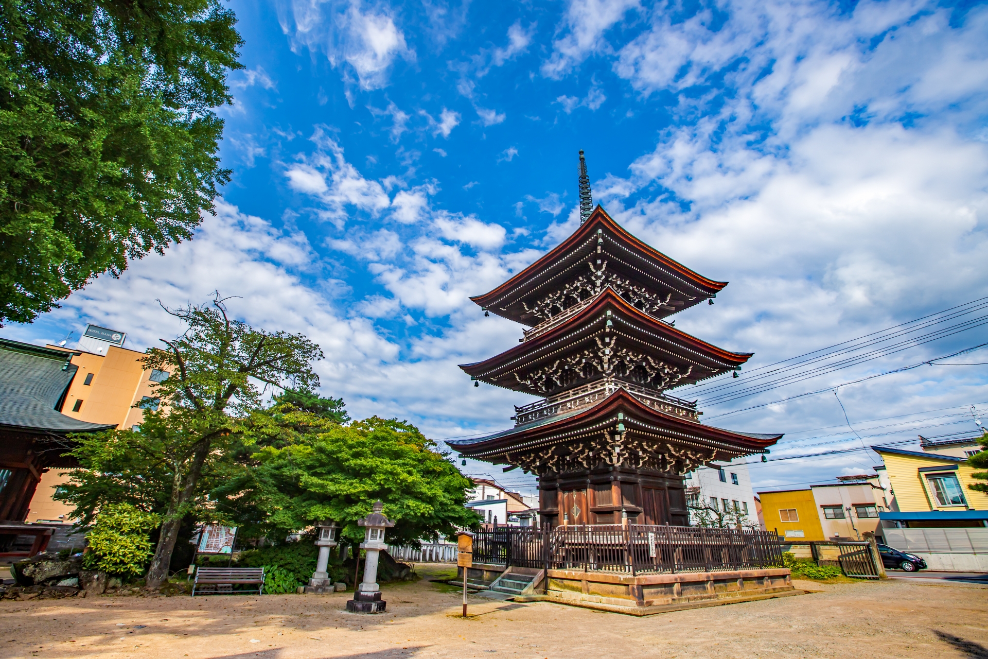 現存する中でも特に古い三重塔が境内の象徴として建っています。