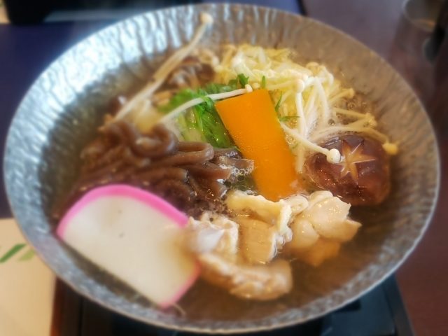 鶏肉や地元野菜を使った、醤油ベースの鍋料理。家庭料理として古くから愛され、旅館や食堂でも提供されています。